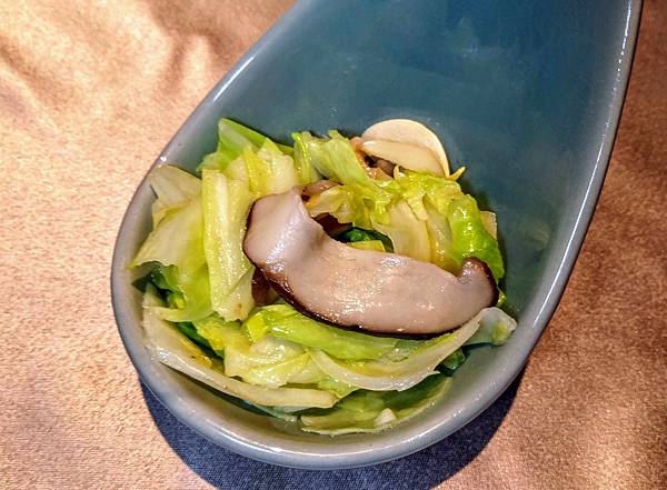 「季節時蔬」清脆的高麗菜,加上切片香菇,大火快炒,入口後軟嫩香甜,令人意猶未盡。