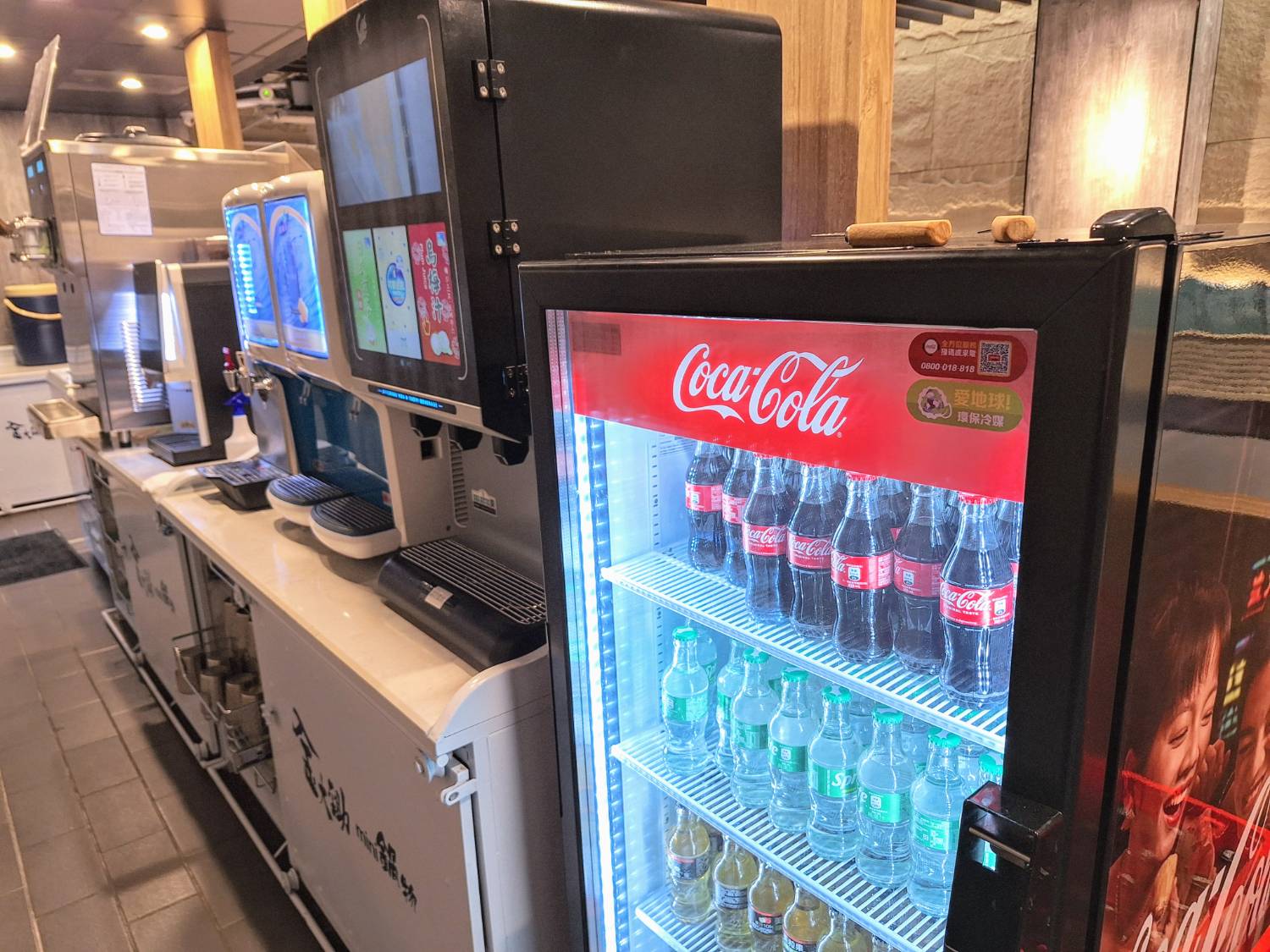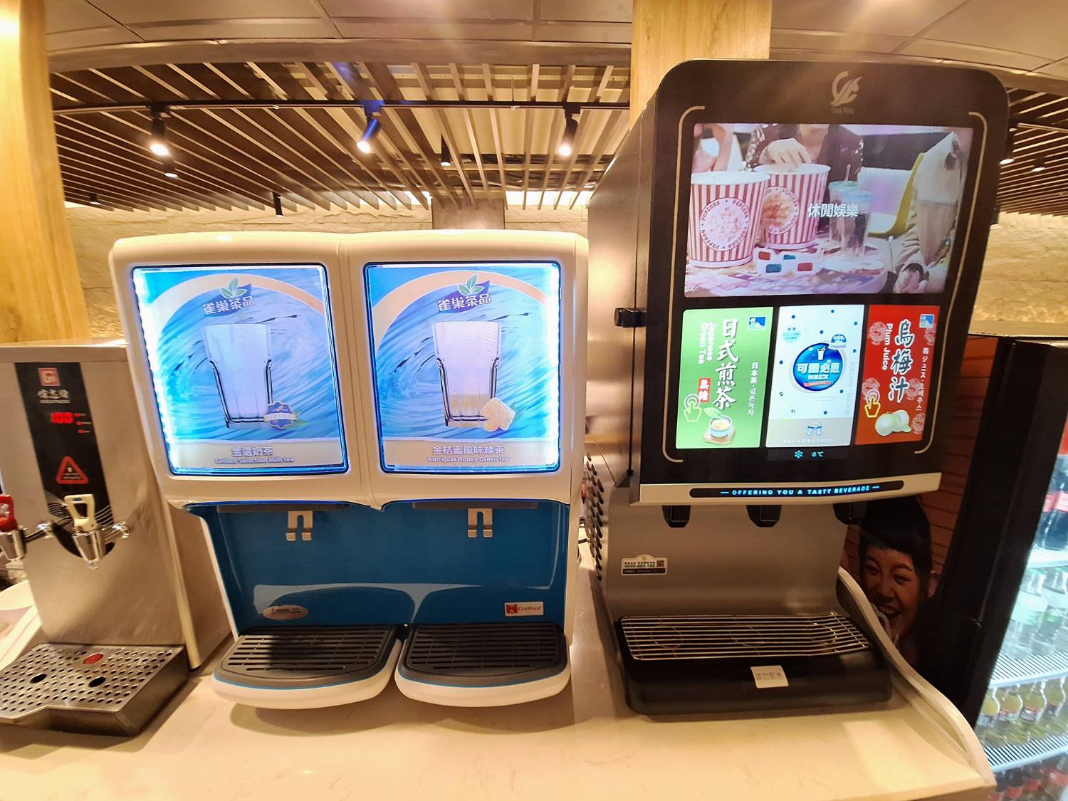 飲料區提供多種選擇,有罐裝的可樂汽水、茶飲、果汁、咖啡等,種類多元,滿足多種人的喜好。