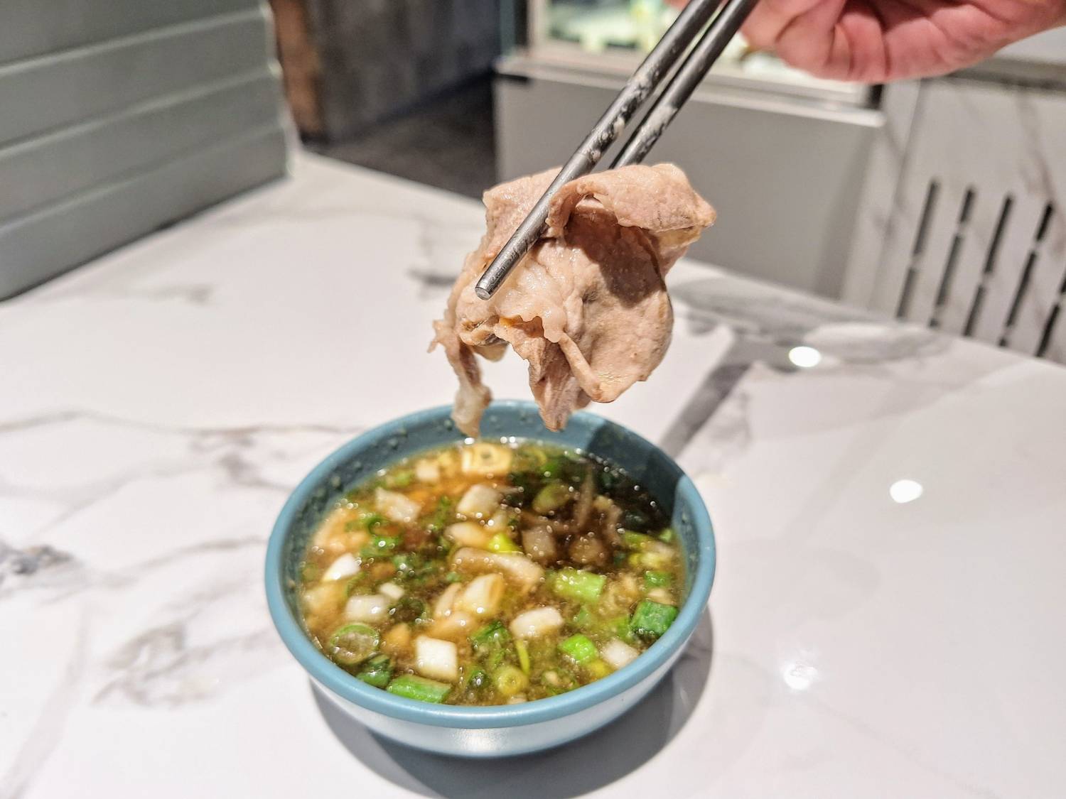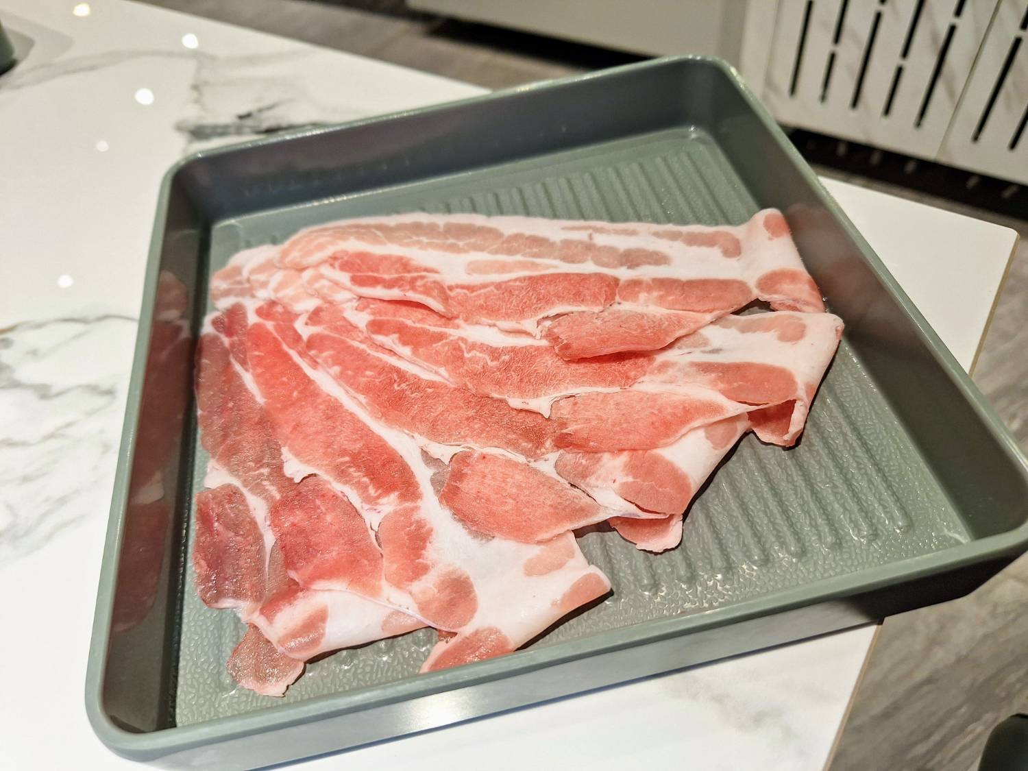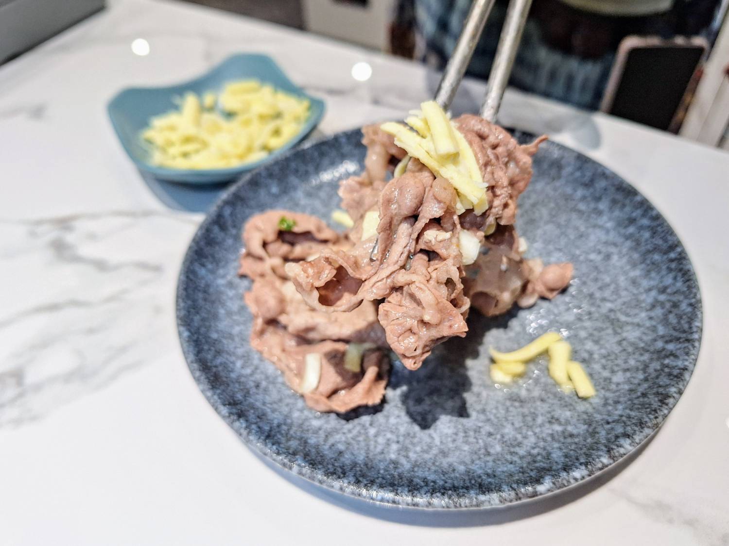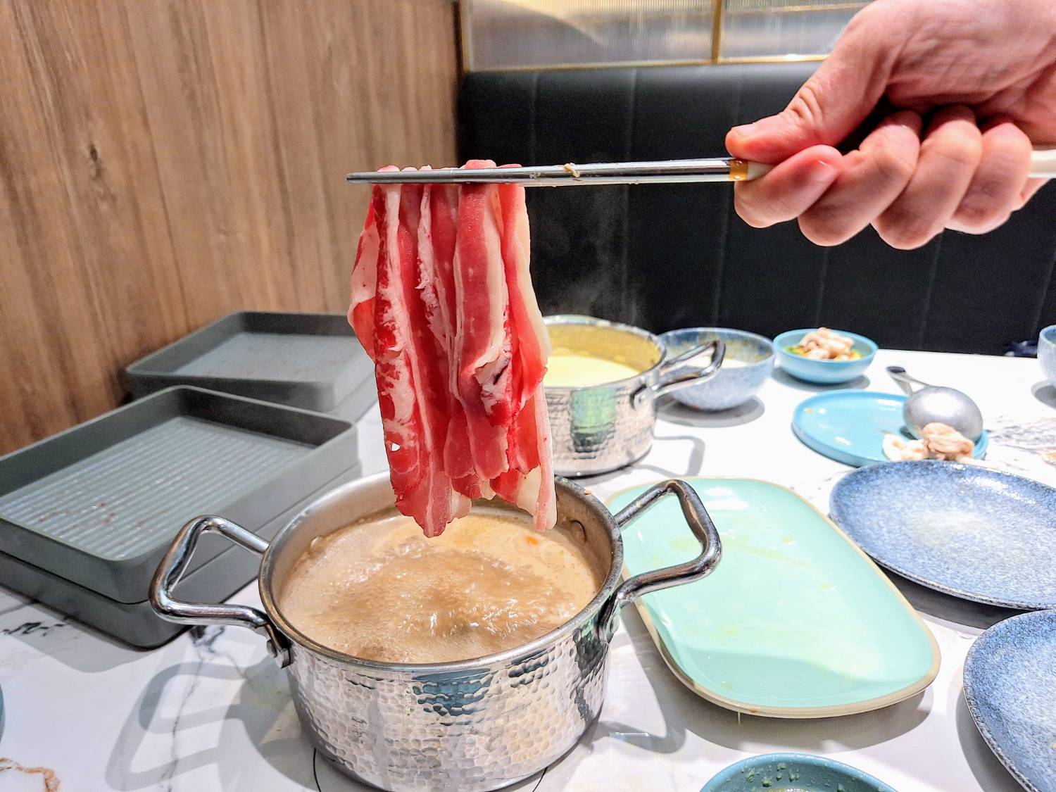 「澳洲和牛M6~M9」油花分布細緻均勻,色澤紅嫩又帶光澤,一下鍋涮個幾秒就能入口,肉質柔嫩帶有明顯香氣及彈性,吃起來完全不乾柴,我們也續了不少盤。
