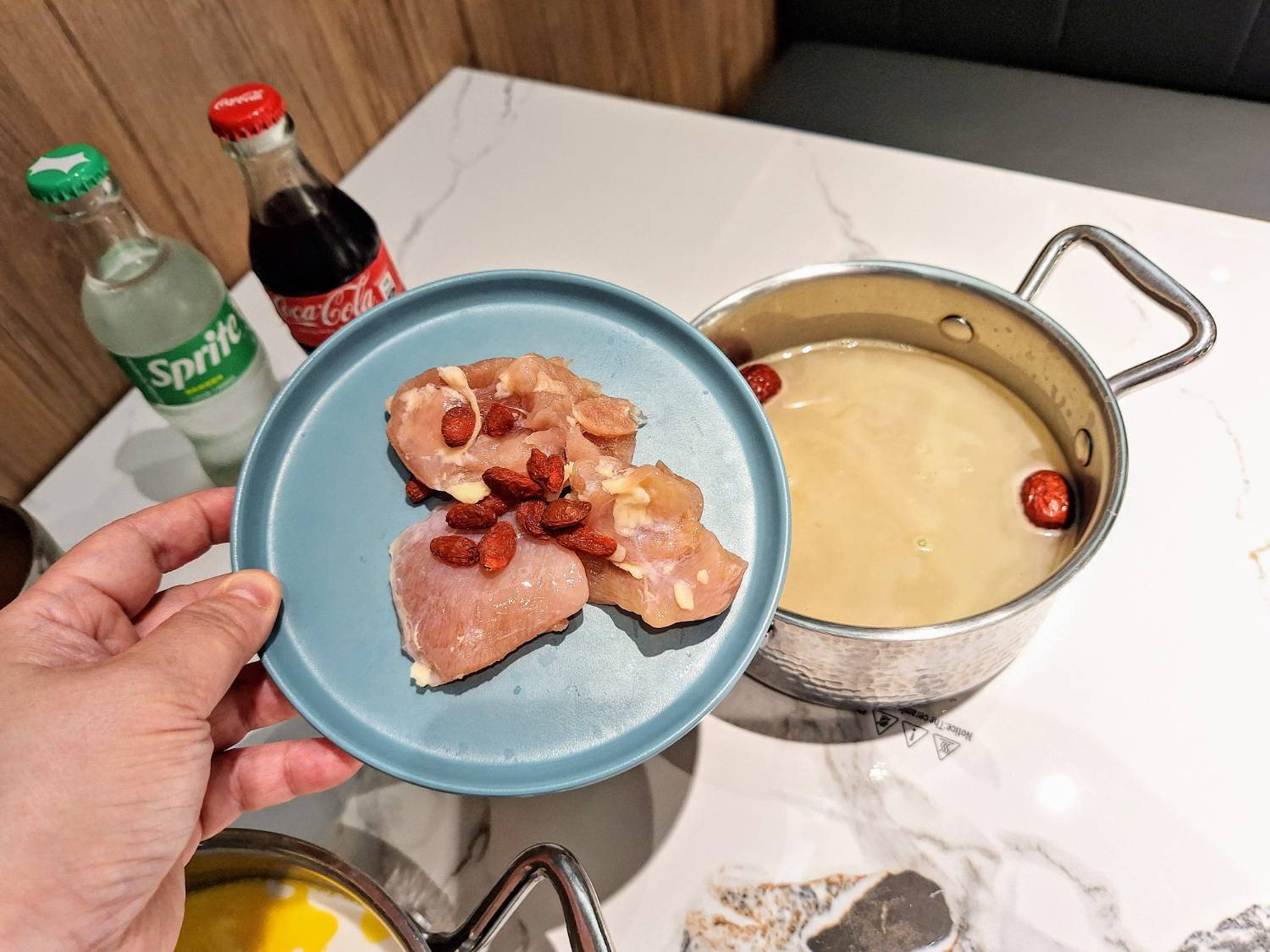 「台式胡椒雞」胡椒味很濃郁,帶有一點點辣微的辣勁,還有紅棗、枸杞、及雞肉,湯頭越煮越濃、越喝越香,溫潤不膩,每一口都暖到心坎裡。