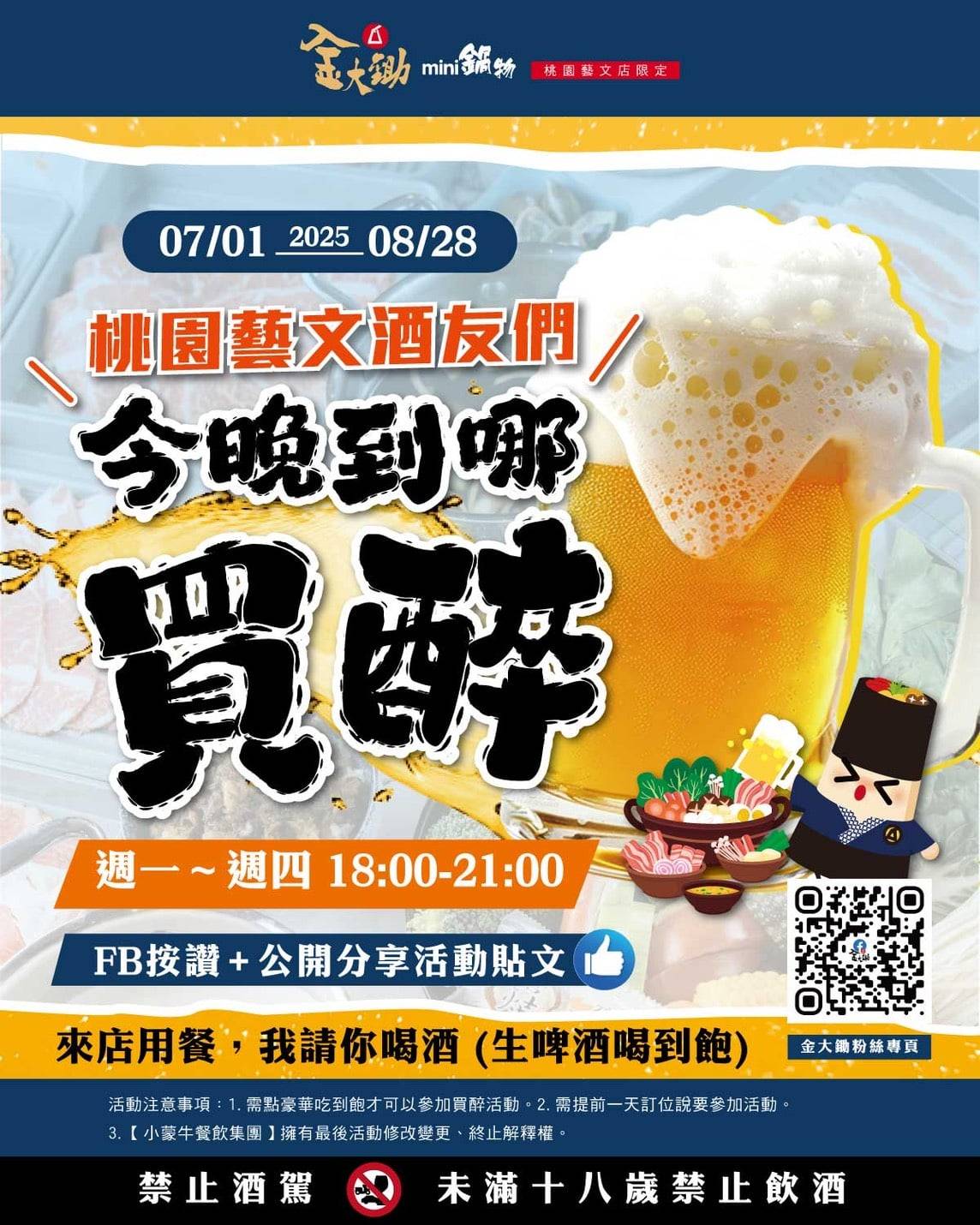 暖呼呼的鍋物最能安撫人心!這次團子來到桃園藝文特區附近的「金大鋤mini鍋物吃到飽-藝文店」用餐,店家由小蒙牛集團經營,前身是許多人熟悉的「金大鋤春日店」,重新整頓後以更時尚明亮的面貌再次登場!主打「一人一鍋」的用餐模式,湯頭高達11種,有單點個人鍋套餐與自助吃到飽可選擇,吃到飽價位548元,還可以加價199元升級和牛海陸套餐,就能吃到澳洲和牛、白蝦、蛤蜊、哈根達斯等食材,加價50元還有啤酒喝到飽,不收服務費這點超加分,店家還有推出多種活動,包含打卡贈送好禮、生啤酒喝到飽及時段價格優惠,不論是獨自用餐,聚會吃鍋都能豪華又滿足!