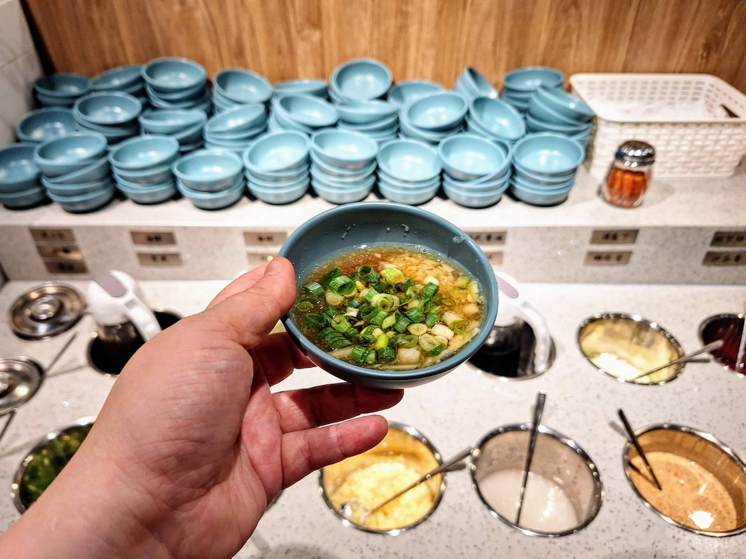 醬料區也十分豐富!提供了蔥花、辣椒、蒜泥、蘿蔔泥、洋蔥、胡麻醬、醬油、沙茶醬等,可依個人喜好,自行調配屬於自己喜愛醬料。