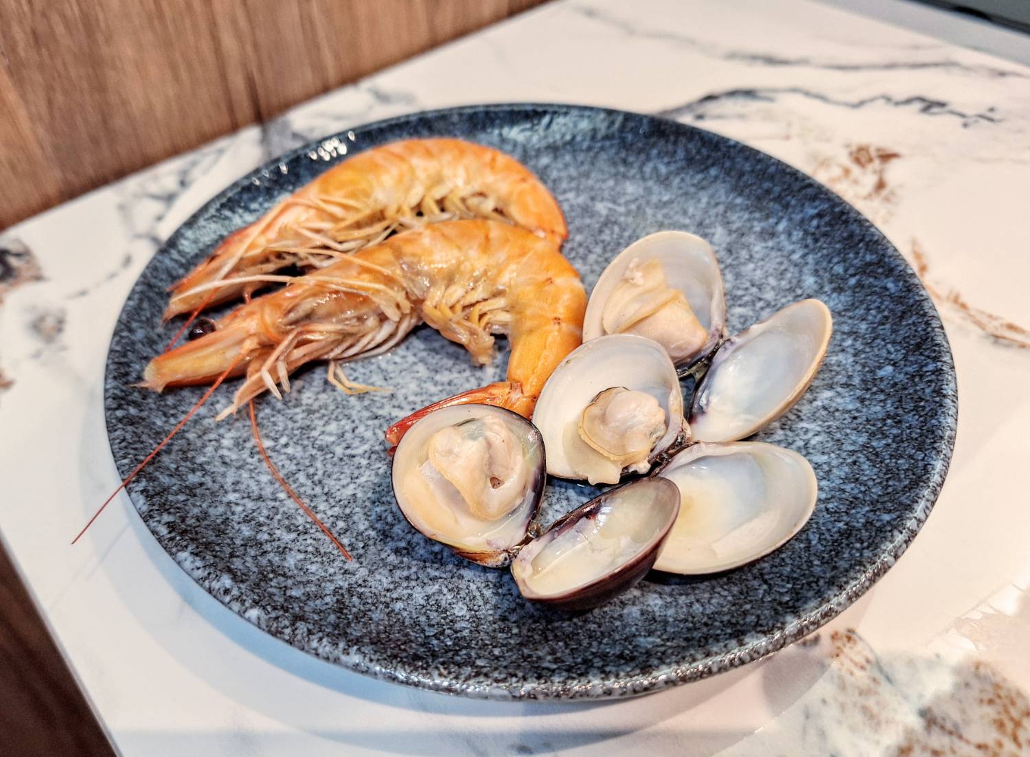 「白蝦」新鮮度不在話下,肉質入口後Q彈有嚼勁,吃得到海味的清甜;「蛤蠣」顆顆飽滿大粒,咬開來滿口鮮甜,煮出來湯頭還會多一層鮮味超加分。