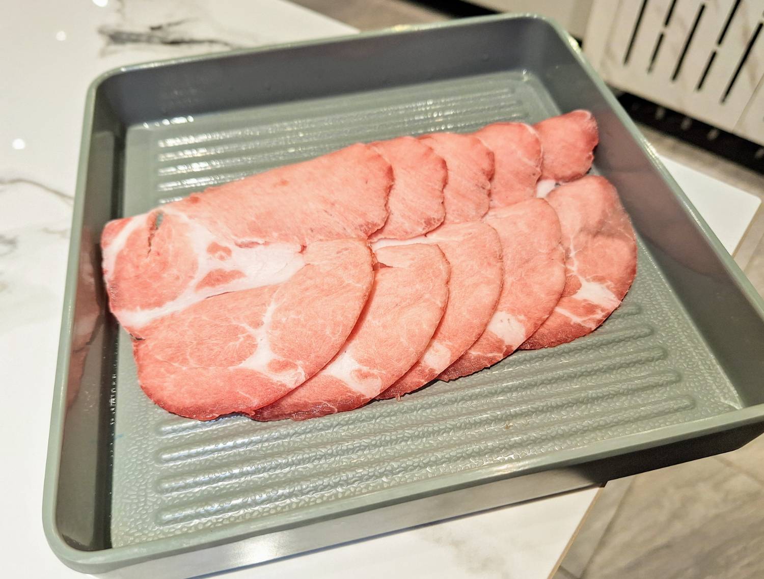 「台灣本土雪花豬」這款比梅花豬油脂稍微多一點,但不會過於肥膩,吃起來口感更為滑順,不會膩口反而有一種濃郁感。