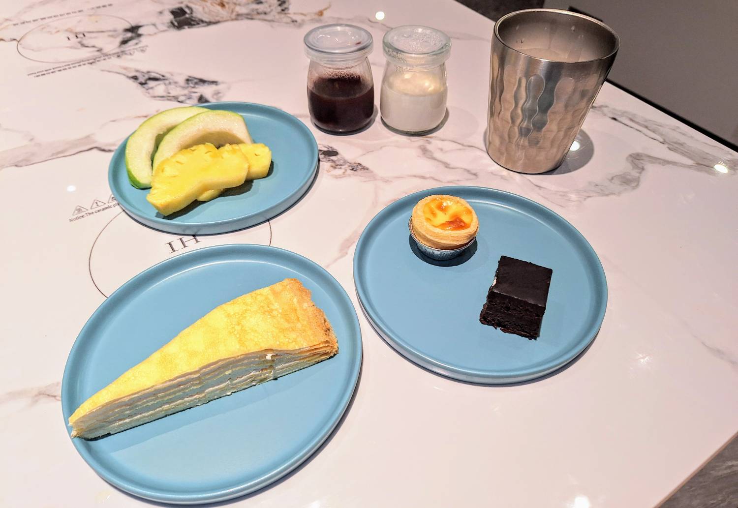 甜點區也超級豐盛,有千層蛋糕、乳酪蛋糕、小蛋塔、巧克力蛋糕、手工奶酪、紫米粥及季節水果,團子推薦必吃手工奶酪,吃一口真的會讓人眼睛一亮。