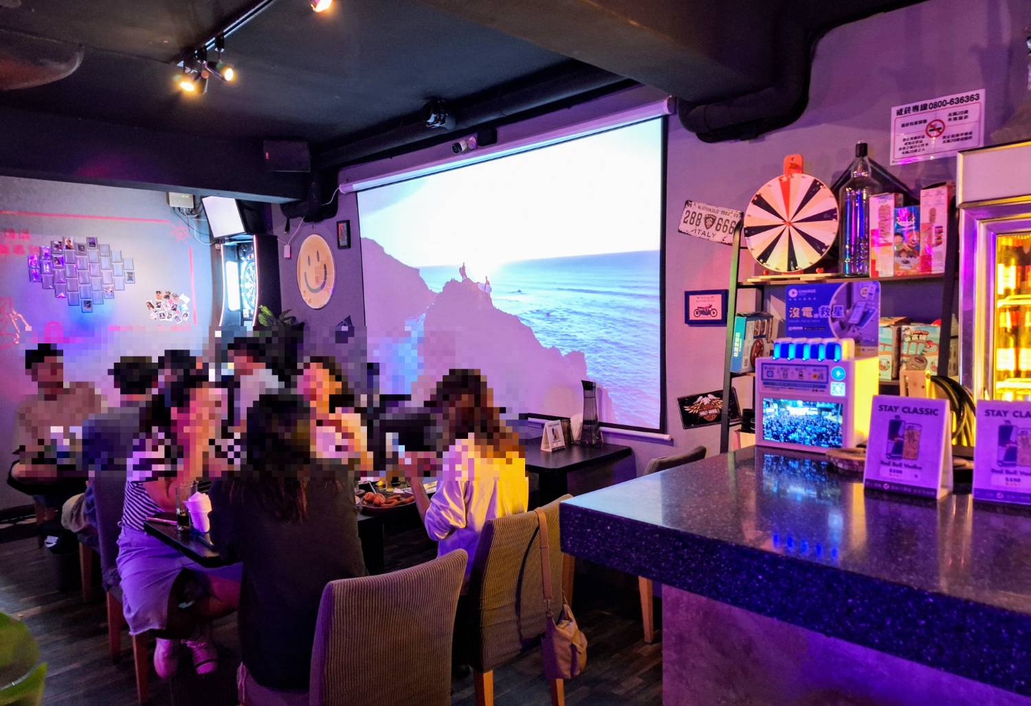 這裡提供包場方案,設備很齊全,想要辦慶生、朋友聚會、慶功、公司聚餐等活動,完全不用擔心場地問題,還有投影機搭配150吋大布幕、4顆監聽喇叭與擴大機、Switch遊戲機,還貼心附上4隻Joy Con、飛鏢機,不管是玩遊戲、看影片、辦Party都很適合。包場價20人含每人三杯酒精飲品的方案18,888元,若不含酒則只要8,888元,CP值超高。