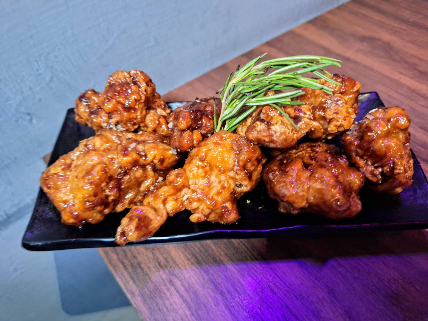 「蜂蜜啤酒炸雞」外皮炸到酥脆,裡頭的雞肉融合了啤酒與蜂蜜的甜鹹香氣,多汁柔嫩不乾柴,吃久了也不覺得膩,反而越吃越開胃,是會讓人不停吮指回味的小點!