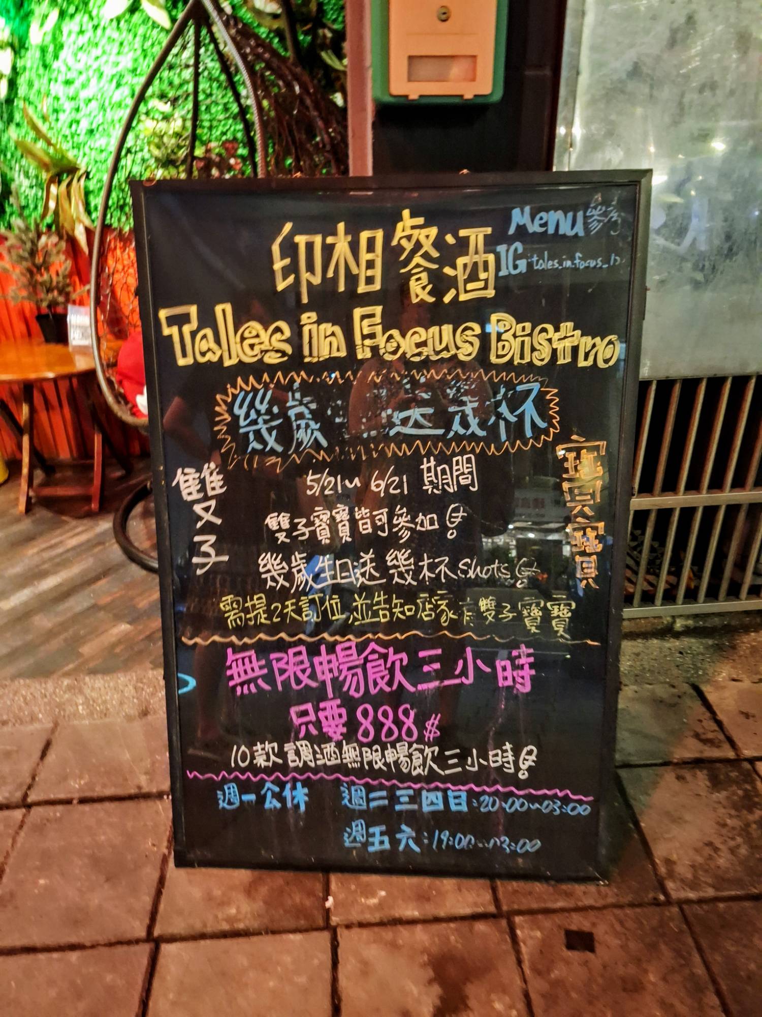本次團子和友人相約板橋的「印相餐酒 Tales in Focus」喝酒聊天,店家是一家結合創意餐飲與多元娛樂的板橋特色餐酒館,提供高CP值的餐點搭配多款創意調酒,另外還有888暢飲三小時的活動,共有10款雞尾酒可供選擇,很適合朋友聚會、生日慶祝、小型派對包場或想小酌的朋友,是下班放鬆的好地方,店家鄰近捷運板新站,步行約4分鐘即可抵達。