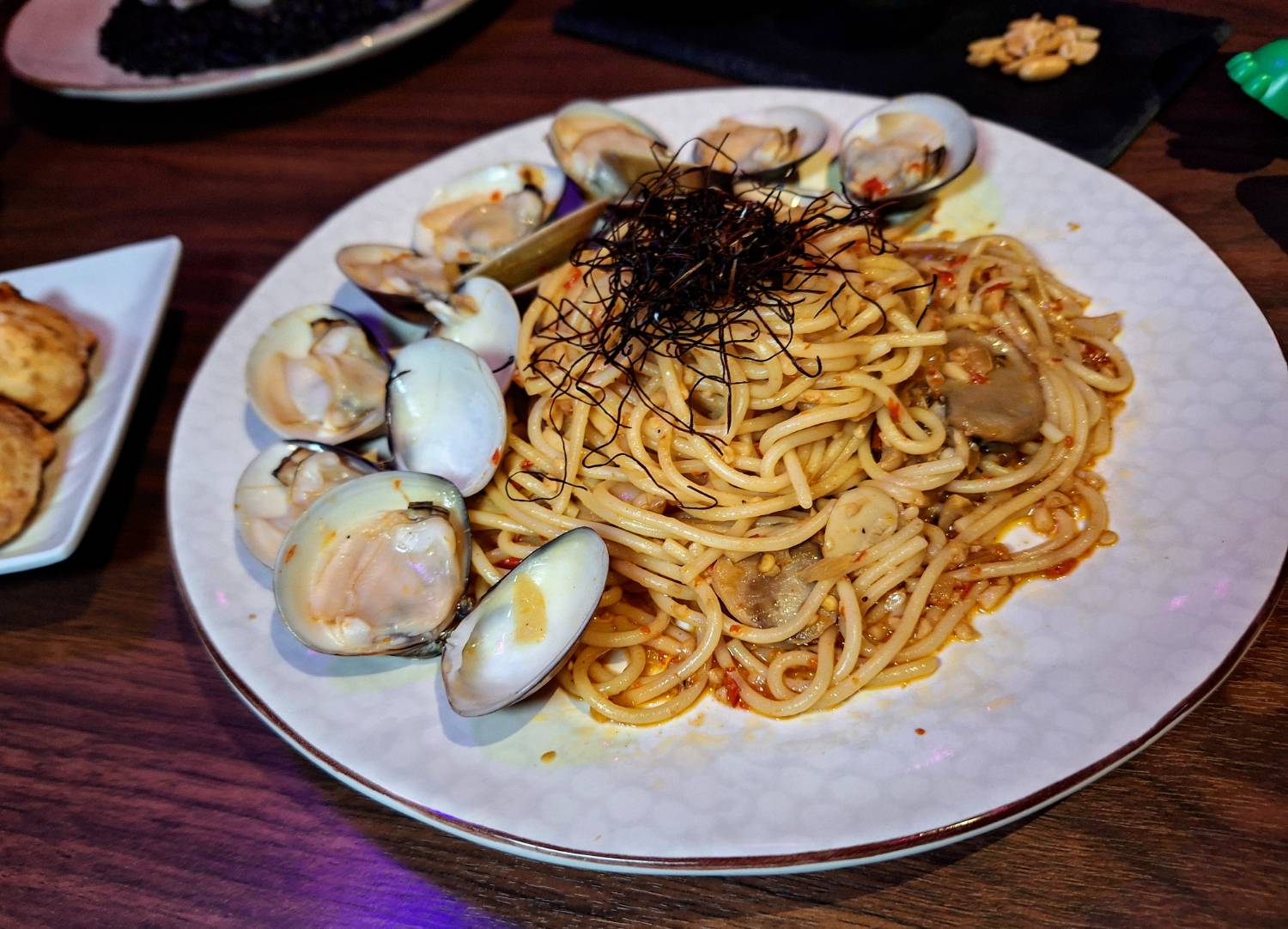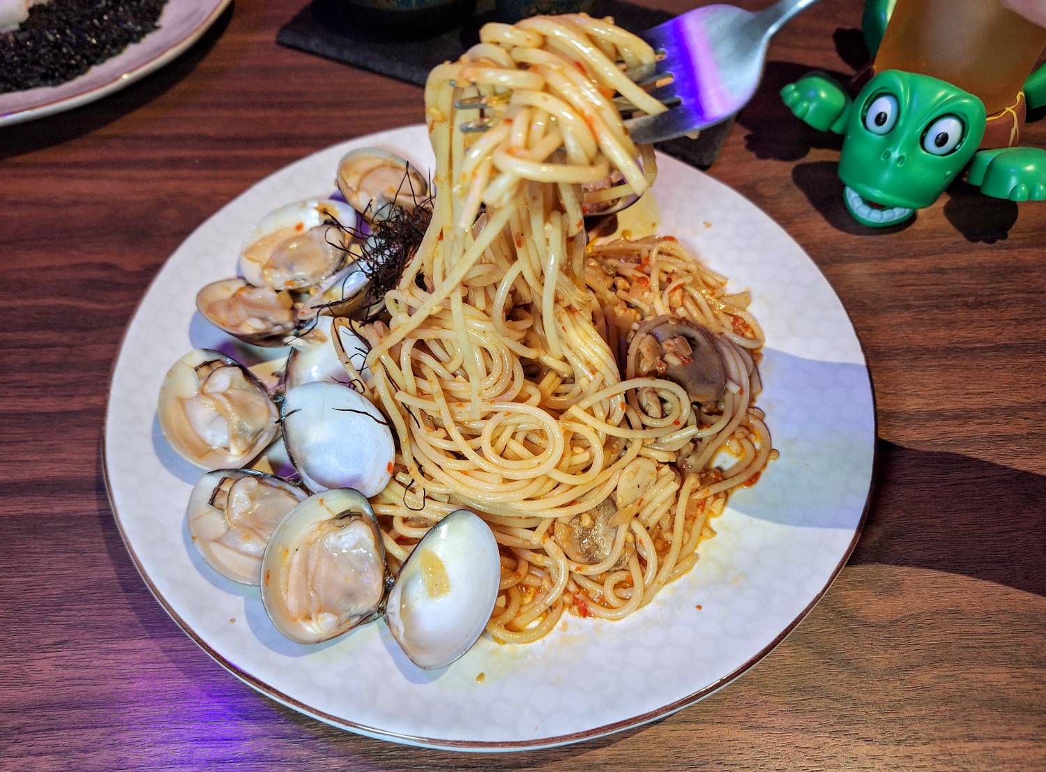 「椒麻白酒蛤蠣義大利麵」選用新鮮飽滿大顆的蛤蠣,完整保留了海味的鮮與甜,加入花椒、辣椒與白酒交織大火清炒,微微的麻辣提升口感,中西混搭的口感無敵契合,非常有特色的創意單品!