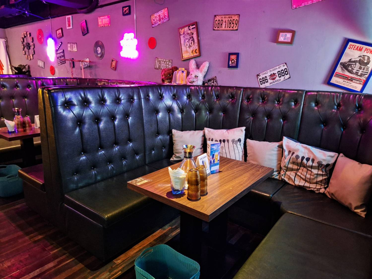 一走進店內,迎面而來的就是濃濃的美式酒吧氛圍,有多張單人座位的吧台區,還有2人、4人座椅與沙發包箱座位,融合迷幻燈光及舒適氛圍的空間,瞬間讓人放鬆。