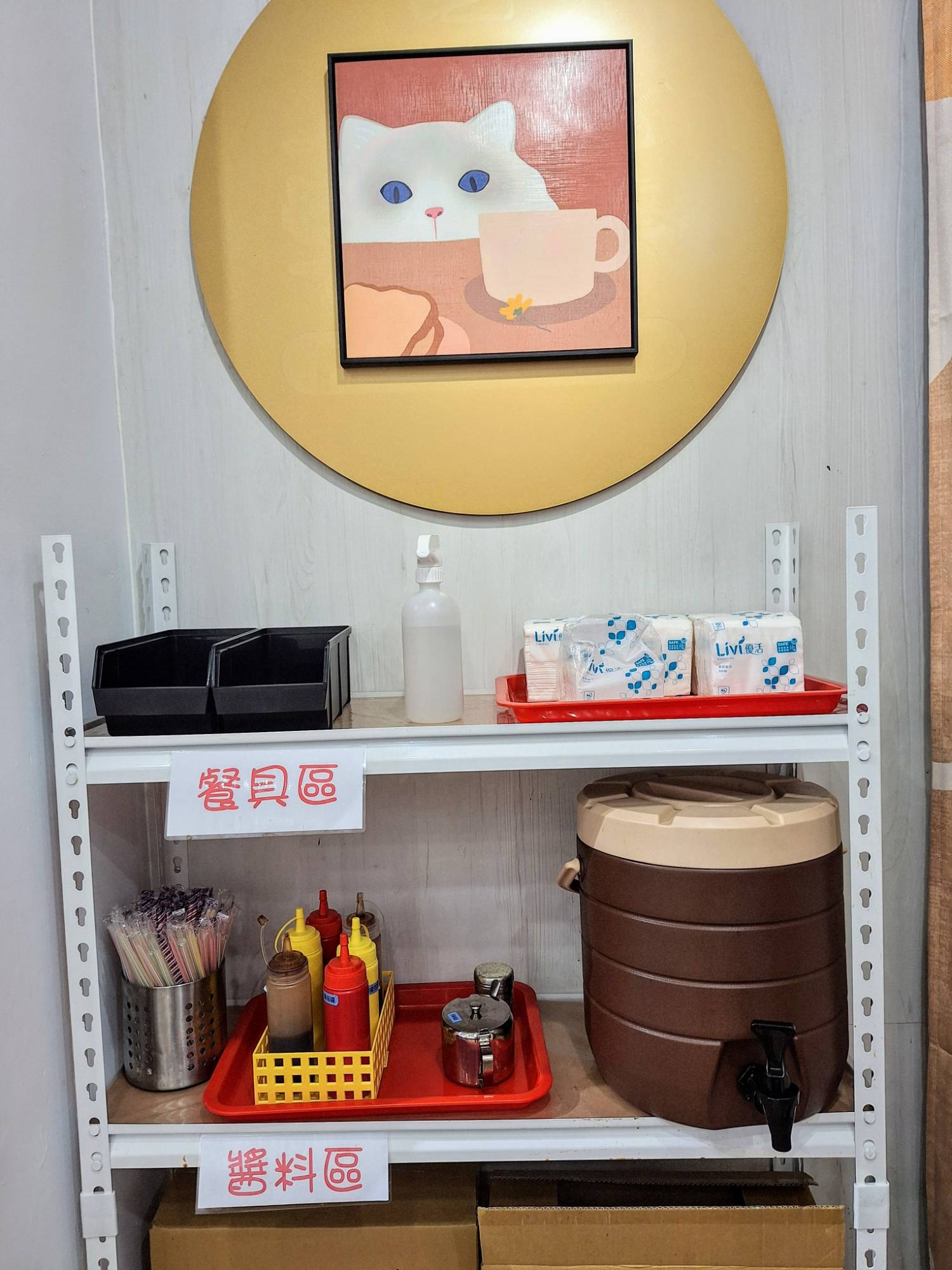 自助區整齊地擺放著番茄醬、胡椒、醬油與店家自製辣椒醬等醬料,還有內用有點飲料就可以無限享用的紅茶,辣椒醬香氣濃郁,愛辣的朋友一定要試試。