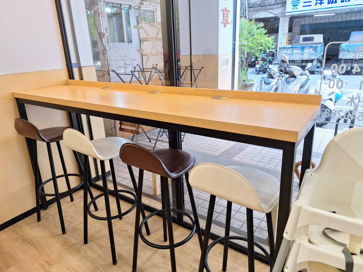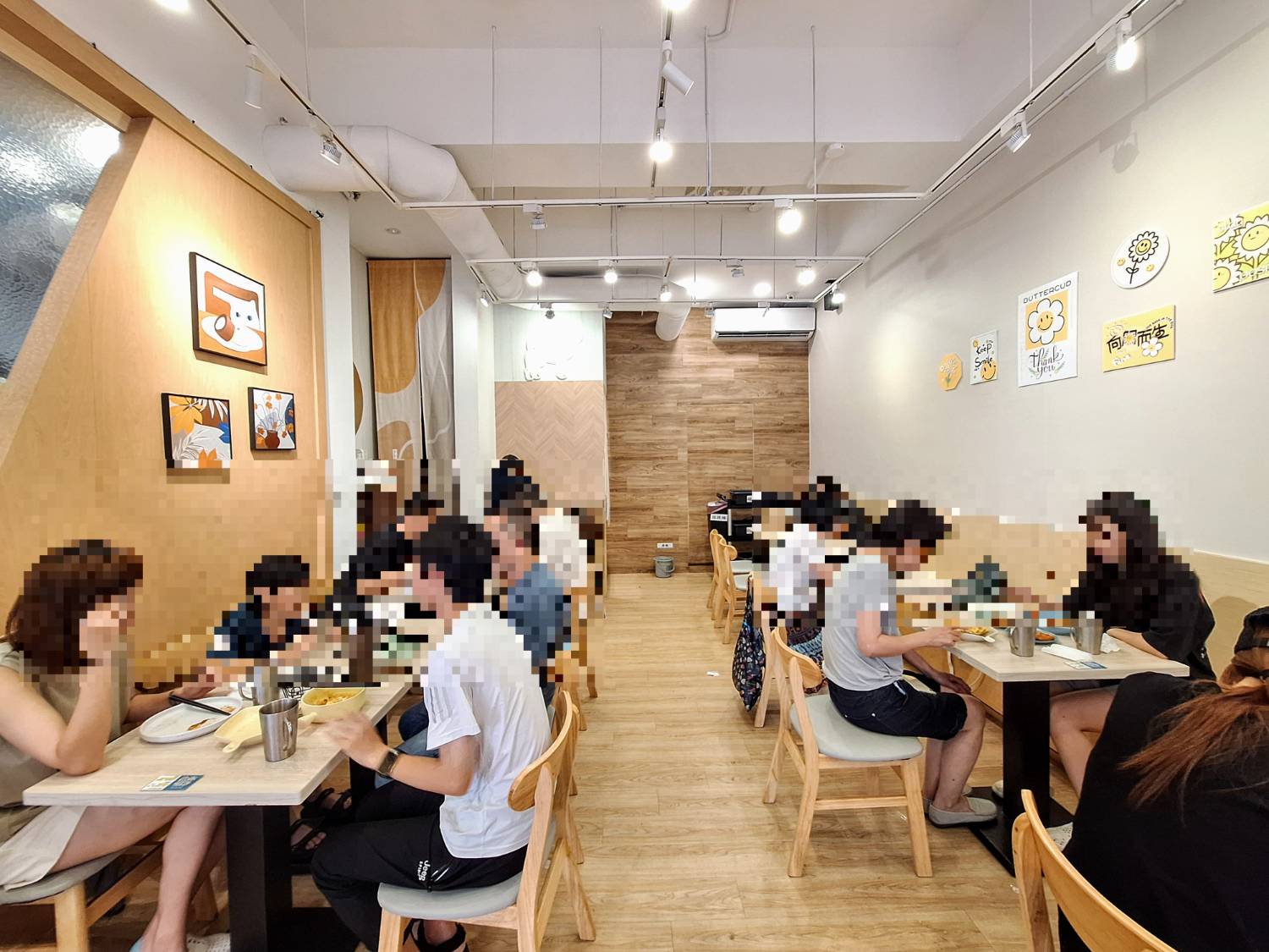 走進店裡早上人潮絡繹不絕,空間簡約明亮,以木質調為主軸,白牆搭配文青風的掛畫,簡單卻有一點小清新的感覺,搭配大面積的落地窗,陽光灑進室內時,讓整體氛圍很舒服。用餐區桌椅間距恰當,有多張2人桌及4人桌,不會覺得擁擠,另外還有吧檯區設有高腳椅,適合一人慢慢品味早餐時光。
