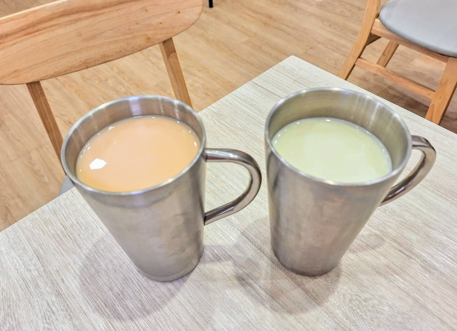 「鲜奶茶」茶底濃郁,和鮮奶融合後,奶味滑順卻不會蓋掉茶香,整體口感溫潤細緻;「豆漿」喝起來帶有豆香微微的甜味,不但解膩順口。